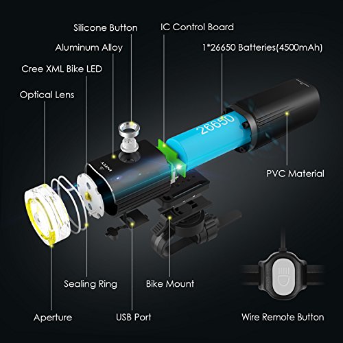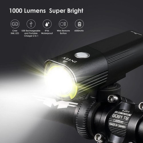 USB Rechargeable and USB Output The INTEY bicycles lights is USB rechargeable bike light, also can be used as a power bank with 4500 mAh built-in battery.