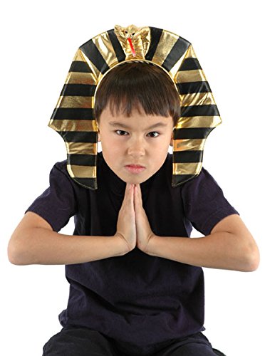 Product Description KING TUT HEADBAND FOR CHILD OR ADULTEgyptian Costume Accessories(Item #EGOT01)Size: One SizeIncludesHeaddress This King Tut Headband For Child Or Adult makes it easy to walk like an Egyptian and charm your prey! Features a fabric-covered headband, stripes of gold and black lame fabric and a stuffed Ureus serpent at the brow, the ancient Egyptian symbol of divinity and rulership! Sized for both kids and adults. 0