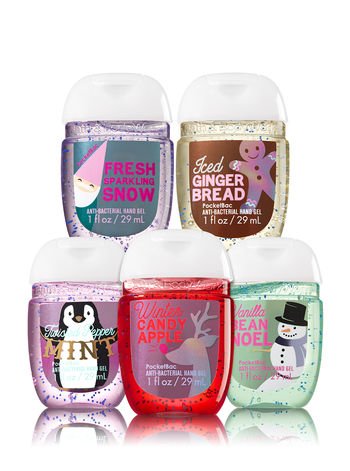 -. Feature : Set of 5 pocketbac hand sanitizers CANDY COATED - 1 Oz each pocketbac / Includes Winter Candy Apple, Twisted Peppermint, Vanilla Bean Noel, Fresh Sparkling Snow, Iced Gingerbread / 5 PocketBacs inspired by the season's magic! Our skin-softening formula kills 99.9% of germs, while the pocket-friendly design makes it easy to keep hands clean & conditioned when you're on-the-go.