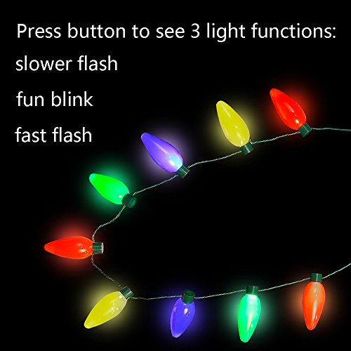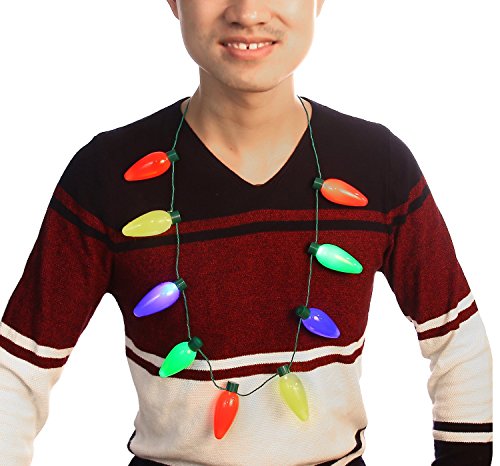 Studio : Moon Boat Publisher : Moon Boat Binding : Kitchen Product Description Package including: 2 x LED bulb necklaces These festive Christmas lights necklaces are a great finishing touch on any festive outfit for men, women and children! These 28" strands have 9 bulbs that light-up and include a battery pack with switch that controls the 3 different blinking pattern settings. These are a great necklace, and also a great decoration when you want a little decor light set without running a plug to an outlet. Let these shiny bulb necklaces surprise your family and friends on Christmas. 0