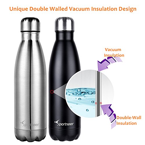 -. Title : Sportneer 17oz Double Wall Vacuum Insulated Stainless Steel Water Bottle, BONUS A Cleaning Brush & A Bottle Cover