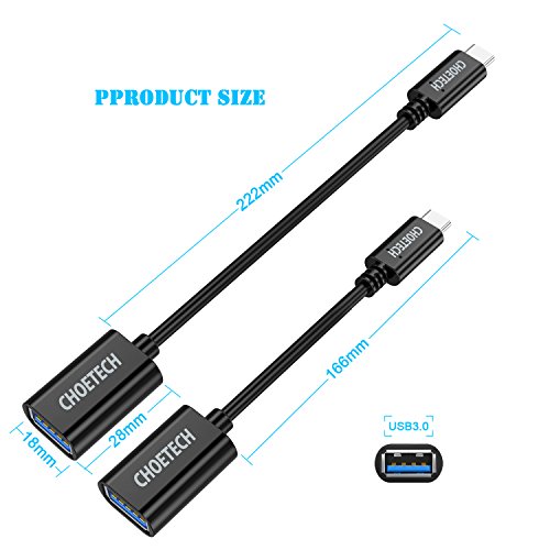 USB C to USB 3.0 Adapter Cable (2-Pack, 0.5ft+0.73ft) , CHOETECH USB Type C to USB 3.0 Type A [OTG] Adapter Cable for 2016 MacBook Pro, MacBook 2015/2016, Chromebook Pixel, Nokia N1, Nexus 5X/6P, etc