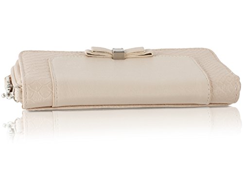 Carry your cash and cards in this classic Jessica Simpson Tara Wristlet Wallet, Exterior Features; Crocodile design and Signature Bow accent, Zip around closure, Interior features; 4 credit card slots, bill pocket and zippered coin pocket. This wallet offers hands free design with the wristlet strap and exceptional organization in sleek styling.