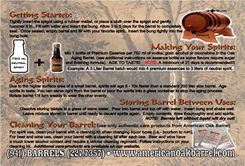 -. Brand : American Oak Barrel -. Feature : Age or make your own spirits 10x faster. Size really does matter and in this case, "Smaller is Better". Reduce the size, increase the surface to volume ratio. Physics at it's best!!! / Simple to use. Just add included essence to the barrel and top off with a neutral rail vodka, grain alcohol or moonshine. Age to taste. The barrel can be used over and over again up to 8 years. / Charred Oak Barrel, Bung, Spigot & Aging Stand, Cleaning Kit, Funnels, Storing Tablets & Instruction Card Included. / Outlaw Kits include everything to care for your barrel and create your first batch. / Easily stores on your counter, bookshelf or make it the keystone on your home bar. -. Label : American Oak Barrel -. Manufacturer : American Oak Barrel -. PackageQuantity : 1 -. ProductGroup : Kitchen -. ProductTypeName : KITCHEN -. Publisher : American Oak Barrel -. Studio : American Oak Barrel -. Title : Outlaw Kit From American Oak Barrel - Make Your Own Cherry Bourbon -. Warranty : Our products are handcrafted from American White Oak. Our "Buy With Confidence" guarantee warrants your purchase for manufacturer defect. All parts are guaranteed to function properly under normal operating conditions & American Oak Barrel will replace any non-working pieces within the first 90 days of purchase. CUSTOM ENGRAVED BARRELS ARE NON-REFUNDABLE. NO EXCEPTIONS!!! *-NOTE: Virgin barrels can & in most cases do leak. THIS IS NOT IN ANY WAY A MANUFACTURER DEFECT! The curing process is necessary to swell the barrel & simple instructions are included. Once cured, your barrel will naturally seal & bring you many years of satisfaction & fantastic tasting spirits.