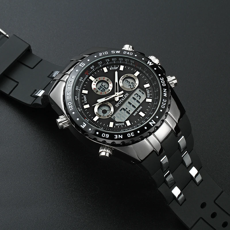 Shock Dual Display Wristwatches:causal mens watches
