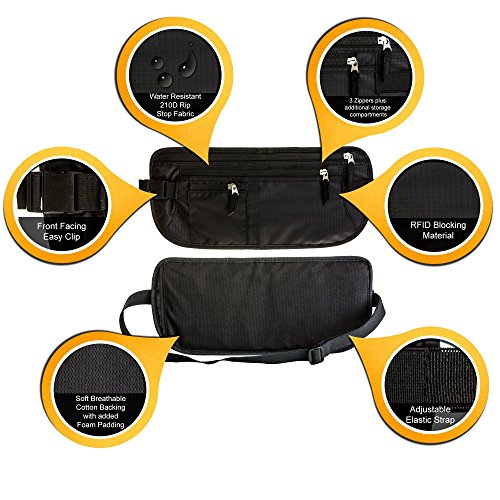 Extra Large Money Belt Travel Accessory Waist Wallet for Passport with RFID