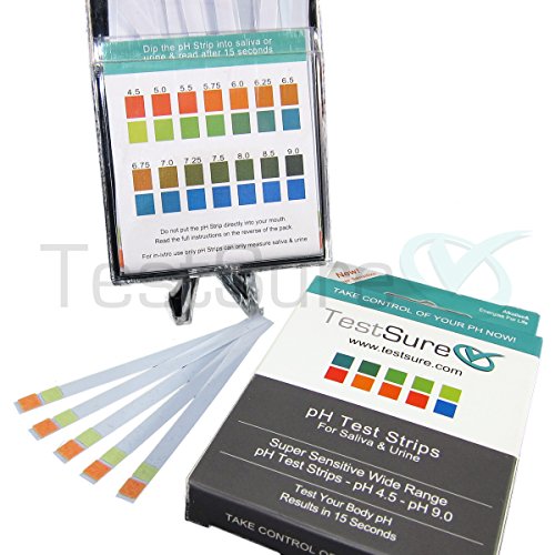-. Brand : TestSure -. EAN : 0718179682087 -. Feature : 2 Boxes of pH Test Strips for Urine & Saliva (100 test strips per box) / 99% Accurate, Independently Tested, Scientifically Proven / pH Test Strips are easy to use, results in 3-8 minutes / CE and FDA approved, 100% Money Back Guarantee / At Home pH Litmus Test - Stay on top of your health from the comfort of home! -. IsAutographed : 0 -. IsMemorabilia : 0 -. MPN : TS59 -. PartNumber : TS59 -. ProductGroup : BISS -. ProductTypeName : BISS -. Title : 2 TestSure Boxes of pH Test Strips for Urine & Saliva - At Home pH Litmus Test Strips (100 per box) Range 4.5 - 9.0 -. UPC : 718179682087