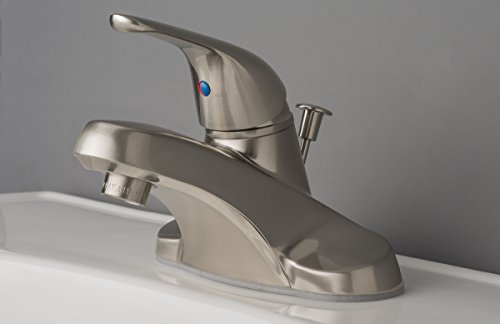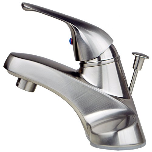-. Title : Builders Shoppe 2040BN Single Handle Centerset Lavatory Faucet with Pop-Up Drain, Brushed Nickel Finish