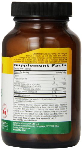 Product DescriptionCountry Life Zinc Lozenges Cherry, 60 lozenges0