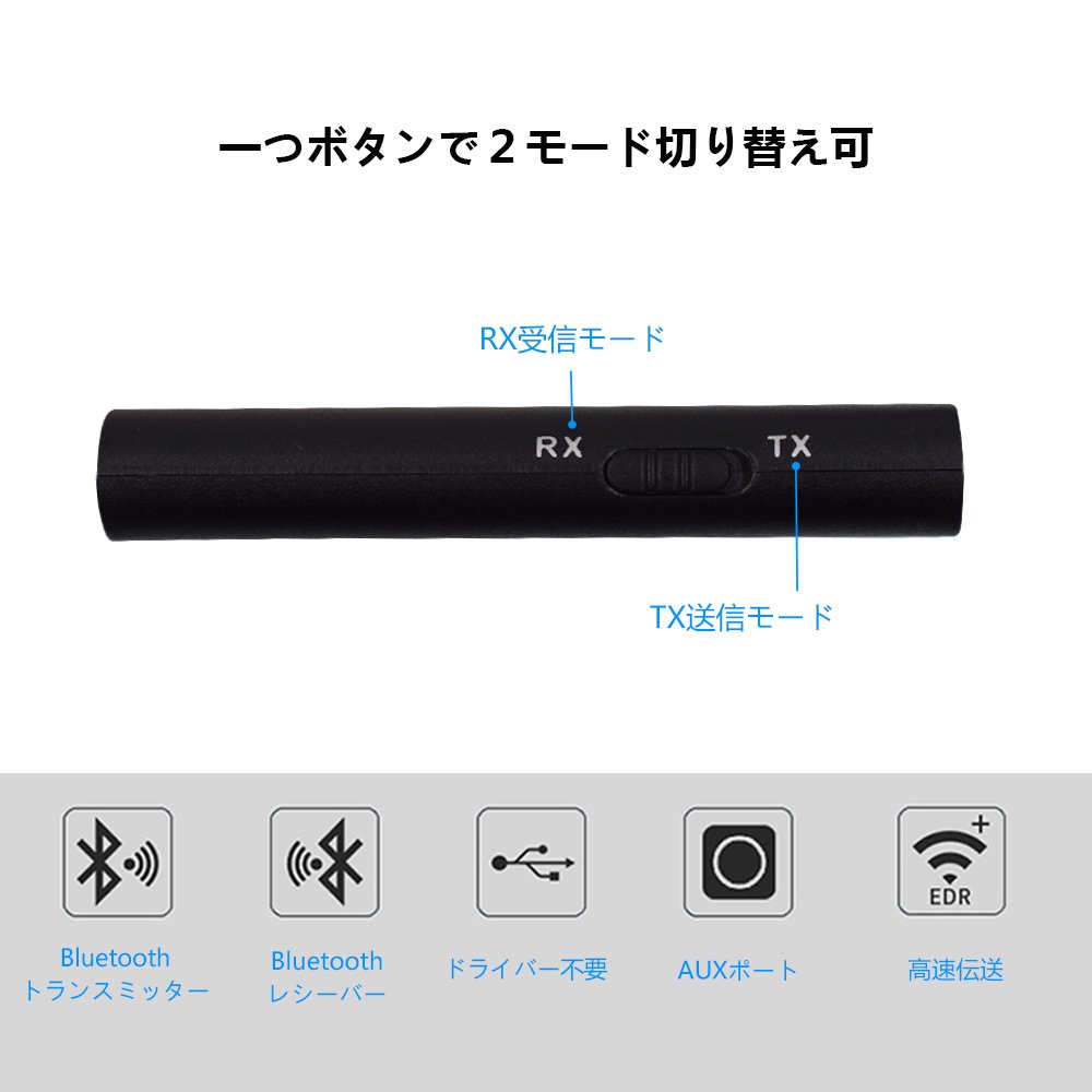 Transmission and reception mode switching of this product can be easily switched with one switch, two Bluetooth earphones can be connected simultaneously in use, and two can play music at the same time ♪ ♫ ♪ ♫