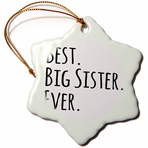 3dRose orn_151535_1 Best Big Sister Ever Gifts for Elder and Older Siblings Black Text Snowflake Porcelain Ornament, 3-Inch