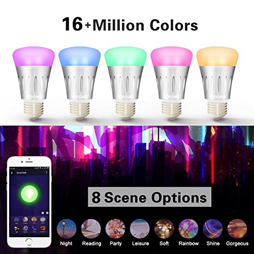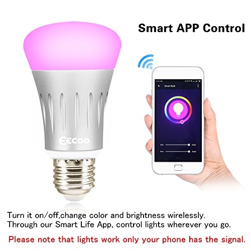 Specification: Material: Aluminum Input Voltage: AC85V-265V Power: 7W Color:RGB W(2800-6500K) 8 Scene Options:Soft,Night,Reading,Leisure,Party,Rainbow,Shine,and Gorgeous. Wireless Type: Wi-Fi 2.4GHz Wireless Standard: IEEE 802.11b/g/n Base Type:Suitable for E26/E27 Base Life Span: ≥30000hrs