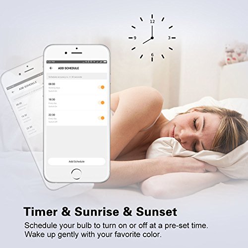 Time setting Can be used as dimmable night light or wake-up light.Schedule your bulb to turn on/off at preset time or color. ▶Note:The WiFi bulb has memory function when you switch on.But it need to reset when power cut suddenly or WIFI has been changed.