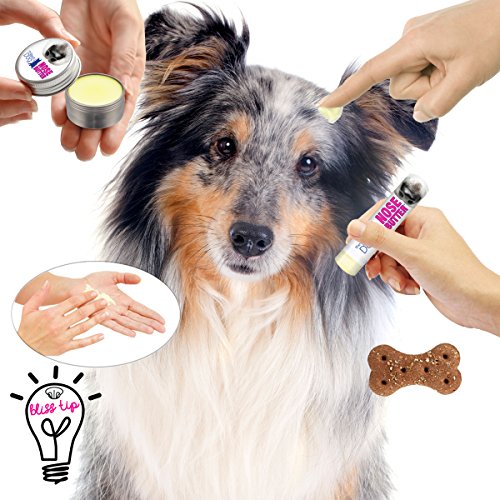 Many dogs have a tendency toward a dry, crusty nose condition, frequently called nasal hyperkeratosis. While any dog can have this condition some breeds have even more of a predisposition toward dry noses; French Bulldogs, Boxers, Pugs, Bulldogs, most Bully type and Mastiff breeds and their mixes. NOSE BUTTER was developed specifically for this condition. NOSE BUTTER For Dry or Crusty Dog Noses. All natural, rich moisturizers soften and smooth your dog's dry, crusty, cracked nose. NOSE BUTTER is individually handcrafted in far northern Minnesota (yes, it is science fiction cold in the winter) using all natural and organic good stuff: shea butter, olive oil, castor oil, avocado oil, almond oil, coconut oil, beeswax, cocoa seed butter, a dash of essential oils and love. NOSE BUTTER USAGE: DAB a bit onto your dog's nose 1-3x a day for 2-3 days (until nose improves) and then as needed for maintenance (usually1-2x a week). DISTRACT with a treat (keeps them from licking NOSE BUTTER off while it moisturizes).DONE! Complete directions, tips, hints and Dog Nose info is available.Feature
