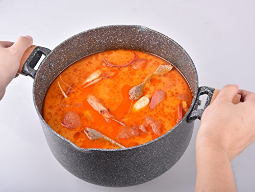 本体サイズ:Φ30cm×高さ10(蓋含む15cm)×奥行き51cm 木ベラ  対応熱源:すべての熱源に対応する。電磁調理器(IH)、ガスコンロ、電気プレート、 セラミックヒーター、シーズーヒーター シンプルで飽きないデザイン ドイツのバイエルン州産 欅ハンドル、滑らかな感触と耐水性 アメリカ SOLVAY社 Torlon/ PAI マーブルコート コーティング、50000回 摩擦実験クリア