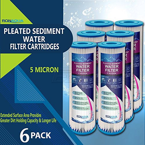 6-PACK of Pleated 5 Micron Sediment Filters, DIMENSIONS: 9.87" x 2.5"