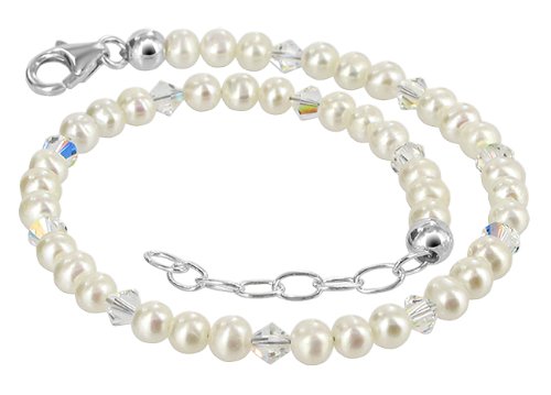 This gorgeous anklet is sure to make all the right impressions. Made with a combination of cultured freshwater pearls and clear bicone crystal accents, this anklet will light up any outfit. The length of this anklet can be adjusted from 9 to 10 inch and it comes with a secure lobster claw clasp in sterling silver. The anklet will be shipped in a FREE gift box, perfect for surprising that special someone.