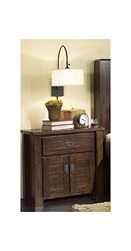 Studio : Progressive Furniture Inc Publisher : Progressive Furniture Inc Product Description Multi-step rich, mesquite pine finish with sculptural distressing. Kenlin metal positive stop drawer guides. Solid pine drawer interior construction. Rustic hammered pull with full back plate in a graphite finish. End panels and bed panels are pine veneers, all other components are pine. Substantial seven inch posts and planked panels. Warranty: One year. Made from MDF. Mesquite pine finish. Made in Mexico. Assembly required. 31 in. W x 17 in. D x 31 in. H (50.8 lbs.). Trestle wood offers a rustic look with massive structural elements showcasing seven inch posts and planked panels with a unique distressed finish. This group is sure to make an impression yet to be forgotten. 0