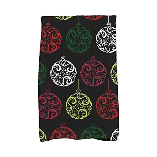 E by design KTHGN680BK4WH1 Painterly Bulbs Holiday Geometric Print Kitchen Towel, 16" x 25", Black