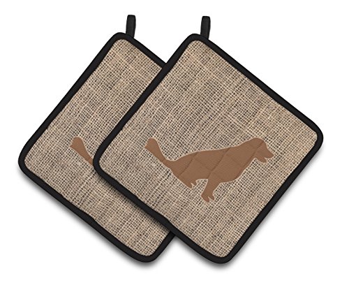 Caroline's Treasures Labrador Faux Burlap & Brown Pair of Pot Holders BB1076-BL-BN-PTHD, 7.5HX7.5W, Multicolor
