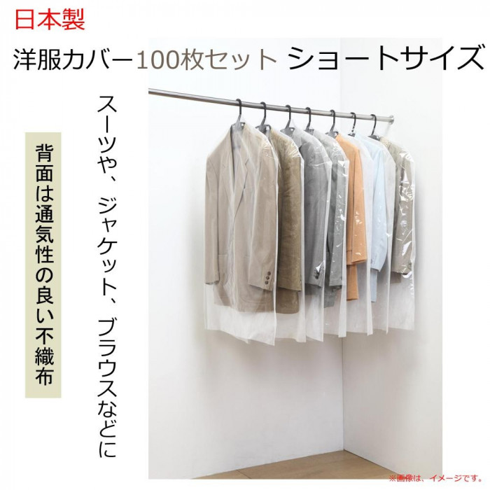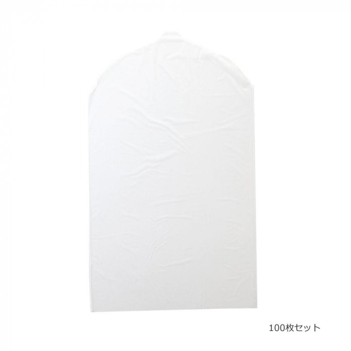 背面は通気性の良い不織布、表面は透明フィルムで中身が一目で確認できます。スーツやジャケット、ブラウスなどの収納にお使い頂けます。100枚入りなので、業務用としても服の整理をするにも便利です。 |