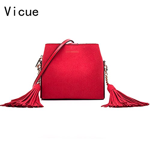 (Vicue)/Accessories/Handbags/DIRECT FROM USA/Vicue Women Tassel Bucket Bag Shoulder Bag Leather Crossbody