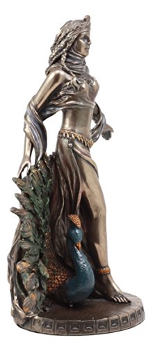 -. Binding : Kitchen -. Brand : Ebros Gift -. Color : Bronze Patina -. Feature : This Hera sculpture is 10" tall, 7.5" long and 4.5" deep approximately. / This Hera sculpture is made of designer composite resin mixed with bronze powder, hand painted and polished. Color Tone may vary / Hera is the goddess of women and marriage in Greek mythology and religion. Hera is married to her brother Zeus and is titled as the Queen of Heaven. Hera is commonly seen with the animals she considers sacred including the cow, lion and the peacock. / This figurine is a beautiful representation of the Goddess. She is portrayed as majestic and solemn with a beautiful iridescent peacock behind her. / This is an Ebros Gift exclusive collection. -. IsAutographed : 0 -. Label : Ebros Gift -. Manufacturer : Ebros Gift -. ProductGroup : Home -. ProductTypeName : HOME -. Publisher : Ebros Gift -. Studio : Ebros Gift -. Title : Ebros Gift Roman Juno Greek Goddess Hera With Sacred Peacock Statue Deity Of Marriage Fertility & Women Decorative Figurine