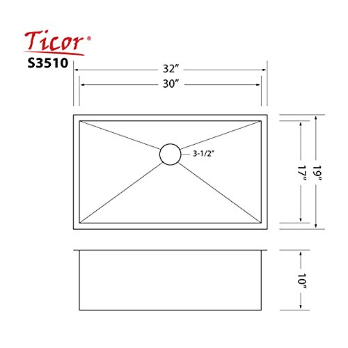 Ticor 32" Undermount 16 Gauge Stainless Steel Square Kitchen Sink Zero Radius 3510BG-BASK