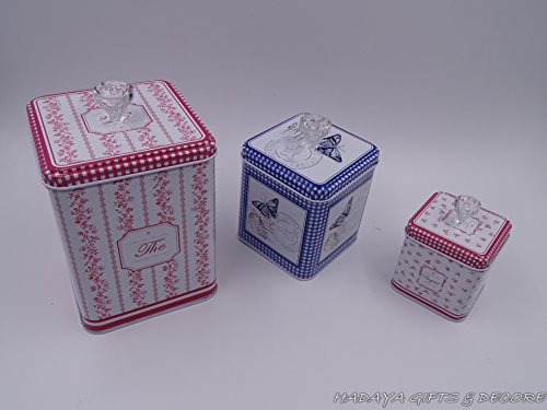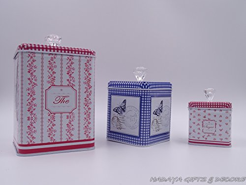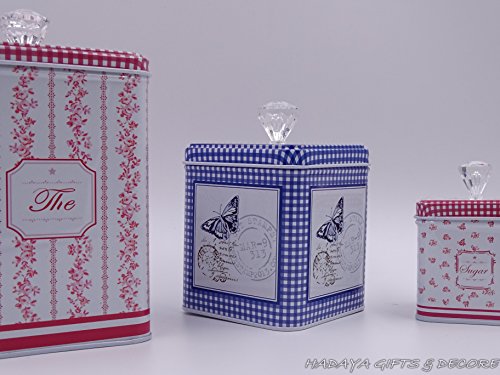 Beautiful Pink & Purple Set Of 3 Cookie Storage Tins, Shabby Chic, With Floral Design and Crystal Knobs …