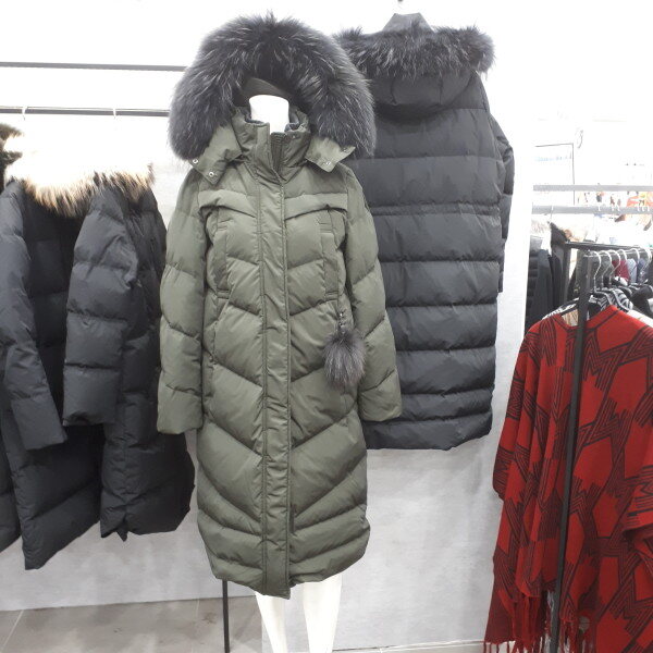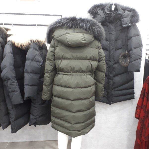 오리털 롱패딩으로 허리라인을 조절할수 있음