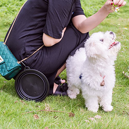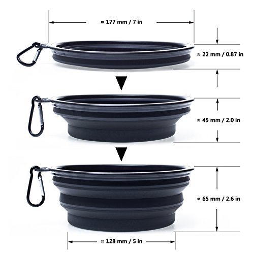 Made of food-grade silicone material, The bowl can be folded up to small size so that you can pack them to anywhere you want and Convenient to carry with metal carabiners, the dog bowl makes a great choice for your pet, The wide no-tip bowls hold up to 1000 milliliter each-perfect for dry kibble, wet food, treats, or fresh water. The durable silicone bowls work well for small to large dogs, as well as cats.