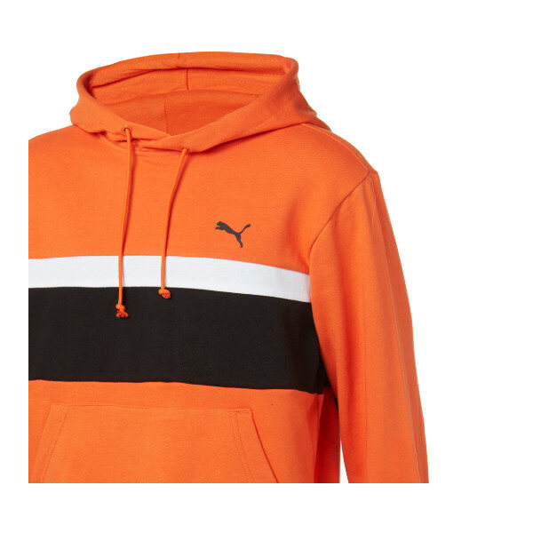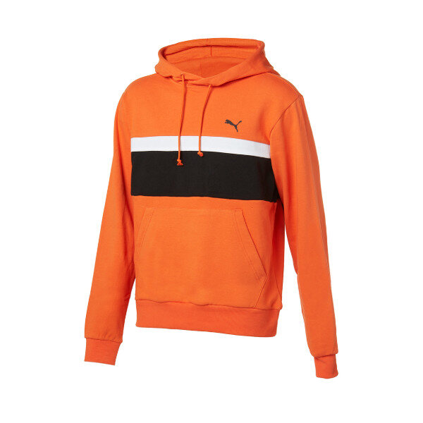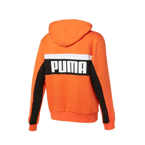 레트로 스포츠 무드의 컬러 블럭킹 오버사이즈 후디.메인 원단과 다른 조직감 있는 배색 소재 사용과 뒤판 오버사이즈 푸마 로고 프린트 디테일이 포인트.경쾌한 스트릿웨어 스타일 연출이 가능.