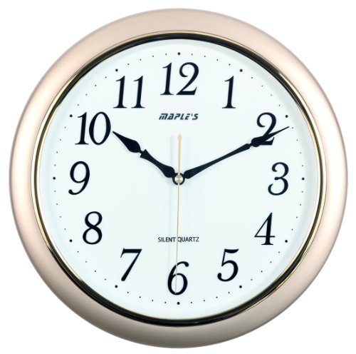 -. Title : Maple's 14-Inch Wall Clock, White Face with Metallic Gold Bezel