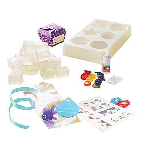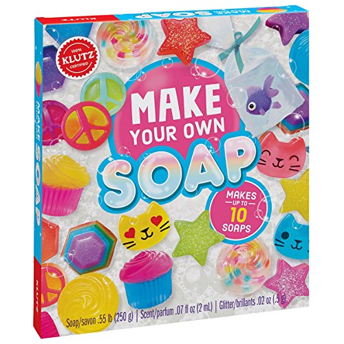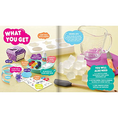 Studio : READ N LEARN Publisher : READ N LEARN Binding : Toy Product Description Explore the science of clean while making your own batch of completely custom soap! With the included soap molds, bright color tablets, coconut papaya fragrance, soap stickers, and skin-safe glitter, this kit has everything you need to delve into the thrill of soap-making. Just follow the detailed instructions and you'll be well on your way to squeaky-clean perfection! Meanwhile, as you're waiting for your signature soap to harden, you'll also get to enjoy the added soap-based science experiments you can do right in your own kitchen. Fun, easy, and wonderfully useful, the Klutz Make Your Own Soap book is a brilliant way to become brilliantly knowledgeable about the stuff that keeps you clean and healthy. Klutz Make Your Own Soap Instruction book and supplies for making custom soap and experimenting with soap science Encourages fine motor skills, creativity, scientific exploration Become brilliantly knowledgeable about the stuff that keeps you clean and healthy! Mold up to 10 custom soaps from scratch Features a variety of fun soap designs and colors - Cats, gems, stars, peace signs, and more Follow along with experiments throughout book to explore the science of soap Includes 20 blocks of clear soap base, soap mold with 6 shapes, 20 color tablets, cosmetic grade glitter, coconut papaya fragrance, skin-safe soap stickers, clear sellophane bag, toy fish, ribbon, gift tag, gift box, 2 paper boats 32-page instruction book included Supplies required from home: 2-cup microwave-safe glass measuring cup, long-handled spoon High quality materials for exceptional soap-making and experimenting experience 0