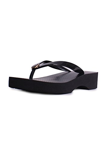 Tory Burch Cut-Out Wedge Flip Flop In Black/Black