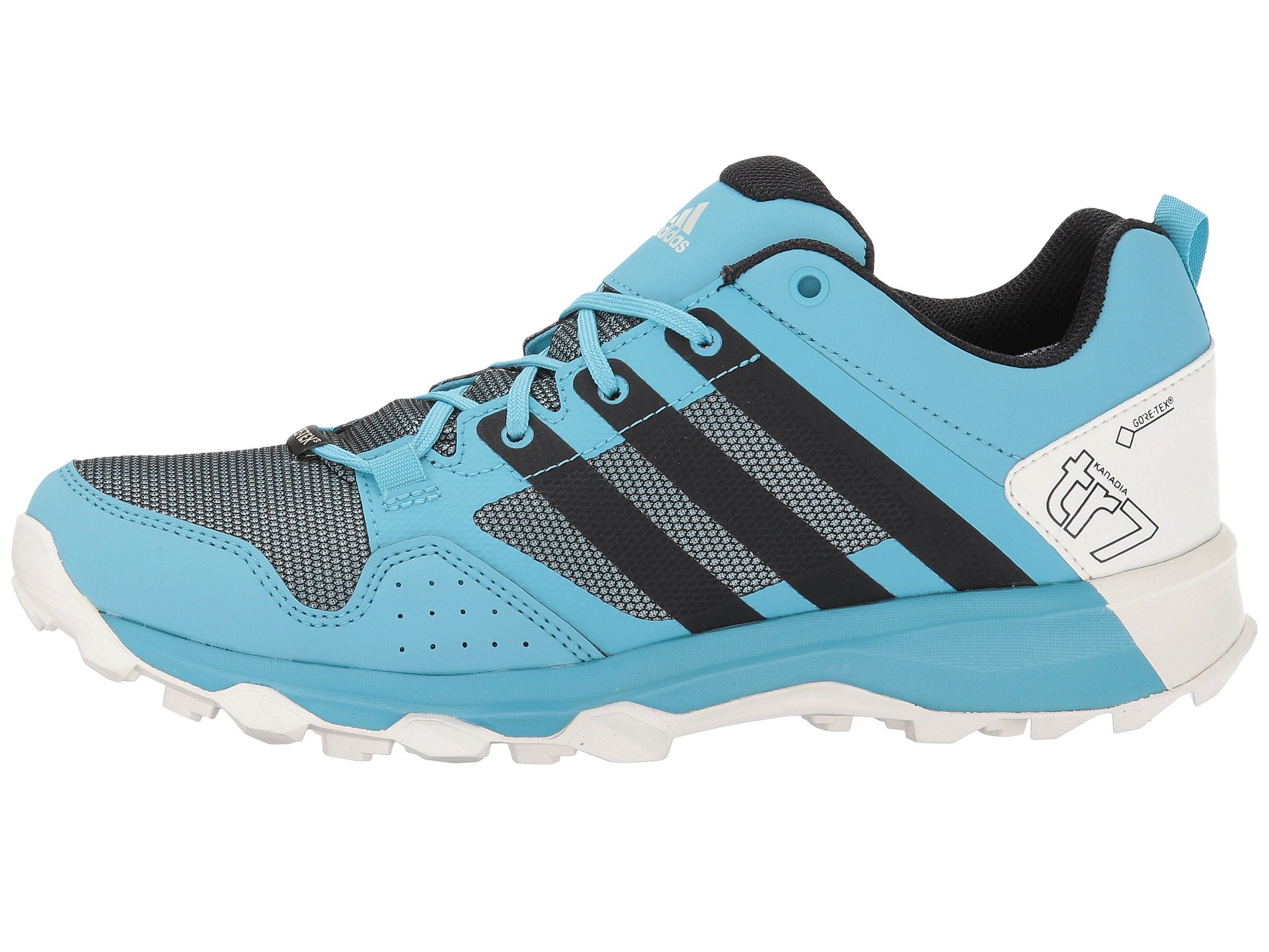 | Product Information SKU: #9061695Navigate the singletrack with expert ease in the adidas? Outdoor Kanadia 7 Trail GTX? trail-running shoe.Predecessor: Kanadia 6 Trail GTX. Support Type: Neutral. Cushioning: Lightweight, flexible response. Surface: Trail. Differential: Not provided. GORE-TEX? technology provides waterproof, breathable protection from outside elements. Breathable mesh and synthetic upper materials. Lace-up closure. Heel pull loop.Padded tongue and collar. Breathable fabric lining offers a great in-shoe feel.Removable foam insole. Lightweight EVA midsole. TRAXION? outsole delivers reliable traction and grip over mixed terrain.Imported. Product measurements were taken using size 7.5, width B - Medium. Please note that measurements may vary by size.Weight of footwear is based on a single item, not a pair.Measurements: Weight: 10 oz |