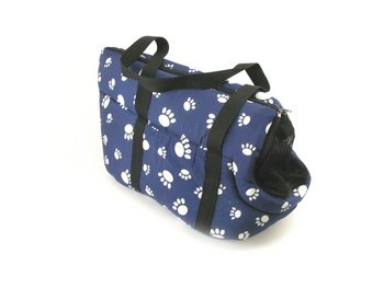 -. Feature : Leash Hook / Approximate Dimensions: 18" x 10" x 12" / Shoulder Strap / Soft Sided / Blue with White Paw P.R.Int Design