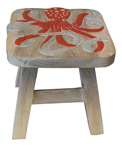 -. Brand : SII -. Color : Tan and Orange -. EAN : 0606280709109 -. Feature : Measures 10 1/2 x 10 1/4 X 10 inches / Made of hand carved wood, hand painted / Due to the nature of materials and crafting process, some difference in texture and finish may be present / Made in Thailand, imported -. Label : SII -. Manufacturer : SII -. MPN : 1-STOC-10 -. PackageQuantity : 1 -. PartNumber : 1-STOC-10 -. ProductGroup : Furniture -. ProductTypeName : HOME_FURNITURE_AND_DECOR -. Publisher : SII -. Studio : SII -. Title : Octopus Ocean Animal Coastal Carved Wood Step Stool Painted 10.5 Inches -. UPC : 606280709109