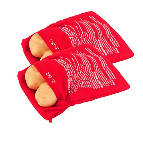 -. Feature : PERFECTLY BAKED POTATOES EVERY TIME: Its locking steam technology allows heat to get evenly distributed making your potatoes perfectly baked all the time, not too saggy or too dry. No need to add water as the bags are built to lock moisture and convert it into steam. / HASSLE-FREE TO USE: The pouches, measuring 9.8" x 8.7" each, are designed to be spacious to let you cook 4 full size potatoes in one setting. Just put the potatoes in the bag, close the flap and place the bag in the microwave with the flap-side facing downwards. Set the microwave/oven in high heat to cook for 4 minutes. / EASY TO CLEAN AND DRY: Machine washable although hand wash is recommended, hang outdoors to dry. Make sure to turn bag inside out before hanging. You can reuse the bags several times before tossing in the machine. No special care needed. / ASSEMBLED FROM QUALITY MATERIALS: Crafted from commercial-grade cotton quilt fiber cloth that's guaranteed to endure extremely high heat and abusive usage. Double sewn inseams to prevent tearing of the sides in the long run. / MAKE DELICIOUS POTATO RECIPES IN JUST MINUTES: With its convenient functionality, it cuts your preparation time. You can also use these baking pouches to cook corn on the cob, sweet potatoes, day-old bread, carrot chunks, squash or even heat up tortillas, or muffins without drying them up.