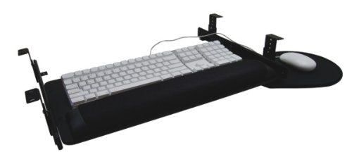 -. Feature : Overall dimensions: 23"w x 16 1/4"d (when mouse tray is fully retracted under the keyboard tray). / Keyboard tray dimensions: 20"w x 10"d. | 19"w x 2"d foam wrist pad. / Attractive and extremely durable 1/4" thick composite phenolic laminate keyboard tray. / 9" diameter swivel mouse tray can be attached to either front corner (standard on the right; specify left side if desired). Complete with mouse pad and edge guard material on back edge.