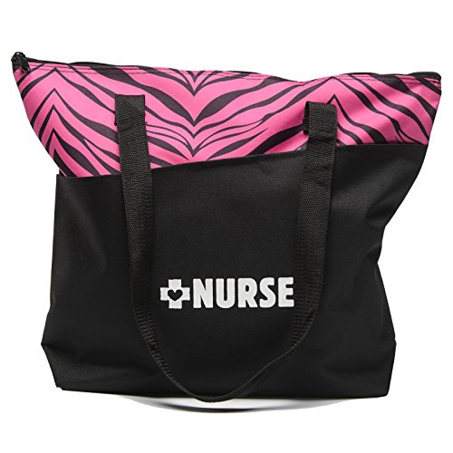 -. Title : "Nurse" Zebra Print Tote Bag - Pink