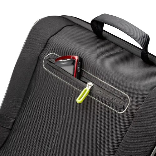 - Feature : Convenient top-load access to quilted compartment for laptops with up to a 17 screen / Roomy storage underneath flap for files, power brick and other bulk storage needs / Accessory pockets for portable mouse, iPod, cell phone and pens in secure front wall zipper compartment / Integrated USB drive pocket / Carrying options include padded shoulder strap or top handles