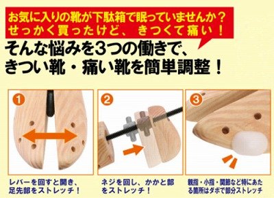 "Leg Leg Revolution Shoes Stretcher for left and right women" is a shoe stretcher (shoes stretcher) that adjusts to the size that fits yourself without breaking the design of the shoes.