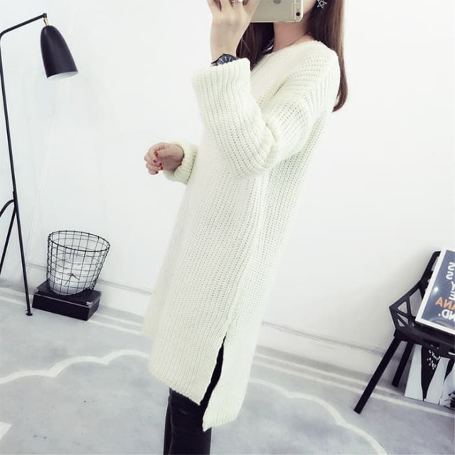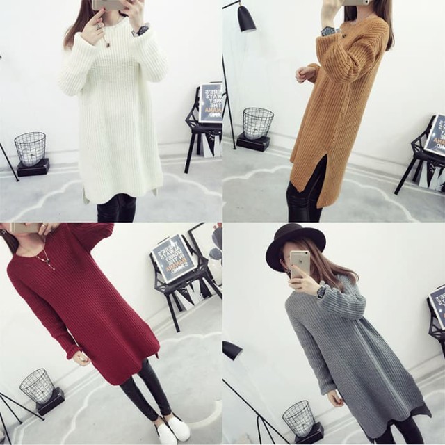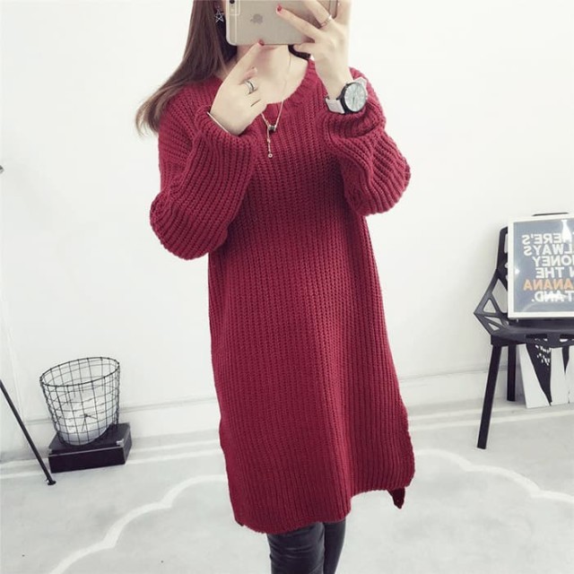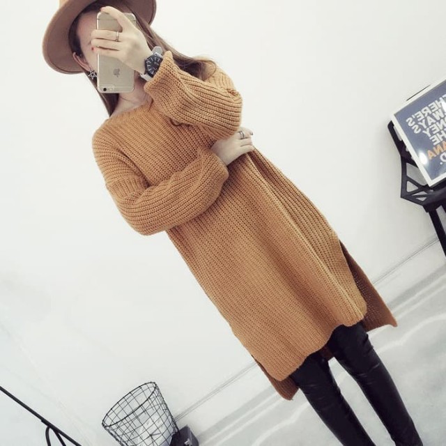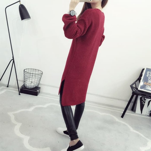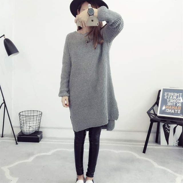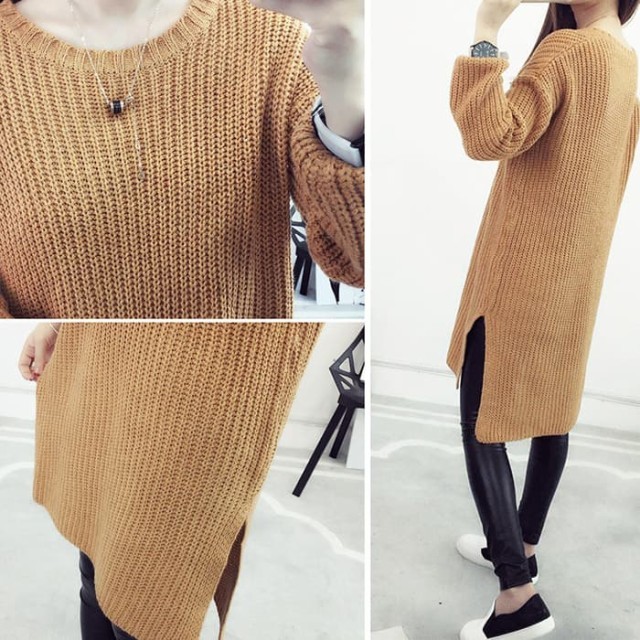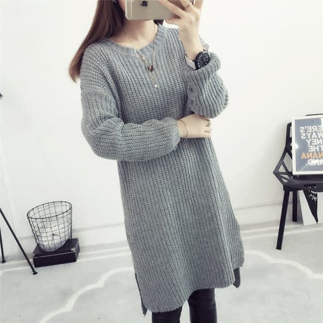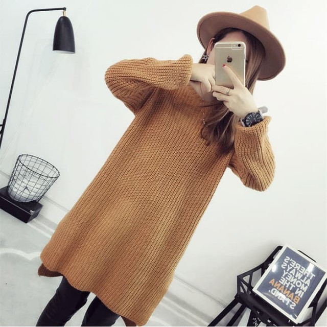 シンプル無地で使いやすい!デイリー使いに便利なニットチュニックワンピース。ゆったりオーバーサイズで着心地楽ちん!