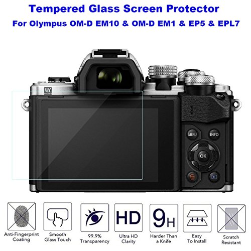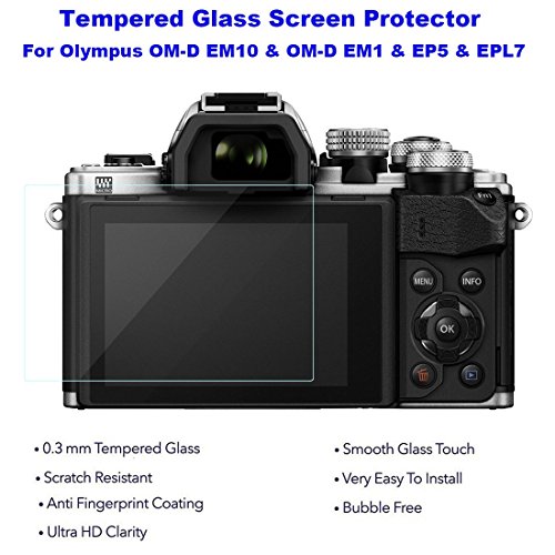 Rerii Tempered Glass Screen Protector for Olympus OM-D EM10, OM-D EM1, EP5, EPL7 - 9H Hardness 0.3mm Thickness Crystal Clear Real Tempered Glass