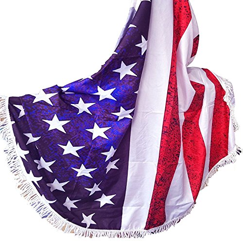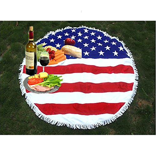 Round Beach Picnic Blanket,Vacation Sunshine Bath Hiking Camping Blanket Round USA Flag Roundie Mandala Tablecloth by Lanbao