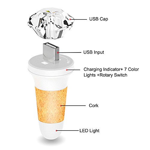 - Colorful & Bright: Super 12 lumens lightness, Diamond cap with 7 color changing transition, Cork cap is warm white, small size big landscape, great decoration for your party, Elegant gift!