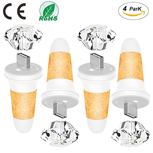 4 Pack LED Wine Bottle Nightlight USB Rechargeable Cork Lights Fairy Starry String Lights Gift Colorful Lamp for Christmas Halloween Wedding Birthday Party Decor (Diamond Cap)