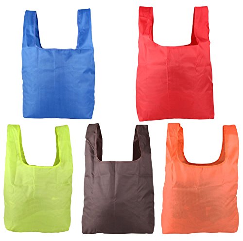 JPNK Reusable, Washable, Durable and Lightweight Grocery Bags Nylon Tote Set of 5