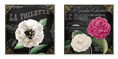 Stupell Home Décor La Toilette and Le Bain French Floral 2pc Wall Plaque Art Set, 12 x 0.5 x 12, Proudly Made in USA